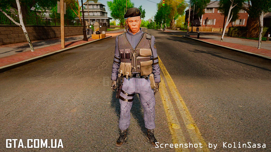 С помощью программы SparkIV или OpenIV, замените в файле "componentpeds.img" (он находится в "Rockstar Games\Grand Theft Auto IV\pc\models\cdimages"), файлы "m_y_cop.wft","m_y_cop.wdd" и "m_y_cop.wtd" на аналогичные из архива.