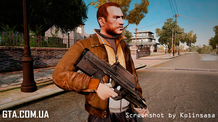 С помощью программы SparkIV или OpenIV, замените в файле "weapons.img" (он находится в "Rockstar Games\Grand Theft Auto IV\pc\models\cdimages"), файл "w_m4.wft" на аналогичный из архива.
