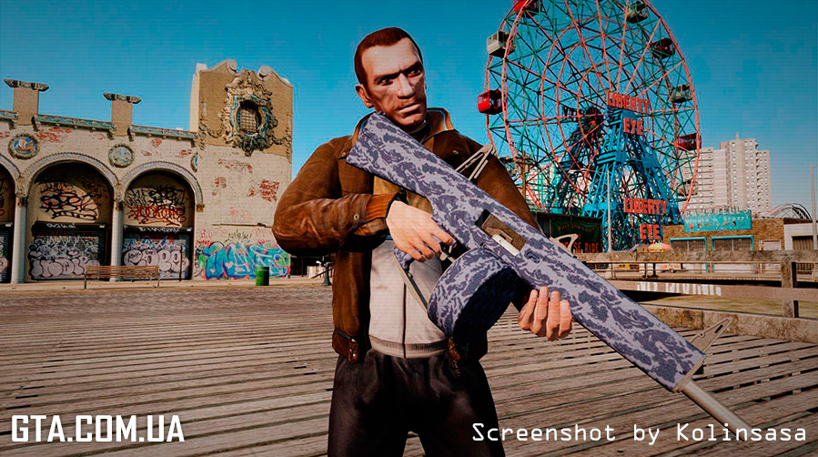 С помощью программы SparkIV или OpenIV, замените в файле "weapons.img" (он находится в "Rockstar Games\Grand Theft Auto IV - Episodes From Liberty City\TBoGT\pc\models\cdimages"), файлы "w_e2_aa12.wtd" и "w_e2_aa12_exp.wtd" на аналогичные из архива.