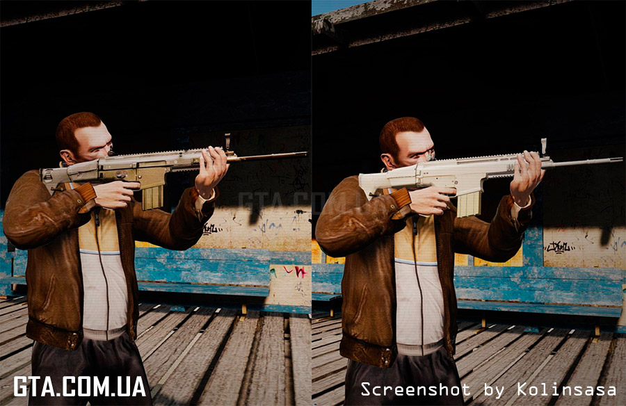 С помощью программы SparkIV или OpenIV, замените в файле "weapons.img" (он находится в "Rockstar Games\Grand Theft Auto IV\pc\models\cdimages"), файлы "w_m4.wft" и "w_m4.wtd" на аналогичные из архива.