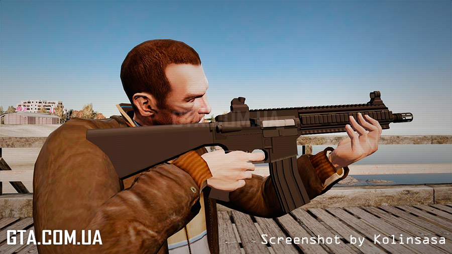 С помощью программы SparkIV или OpenIV, замените в файле "weapons.img" (он находится в "Rockstar Games\Grand Theft Auto IV\pc\models\cdimages"), файлы "w_m4.wft" и "w_m4.wtd" на аналогичные из архива.