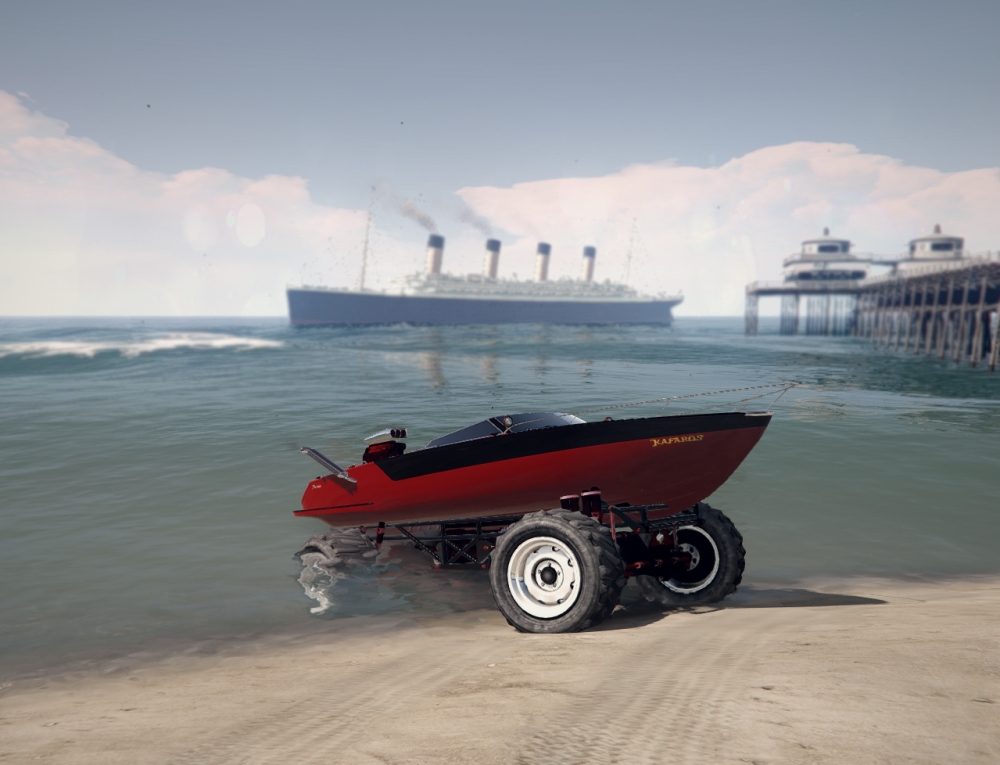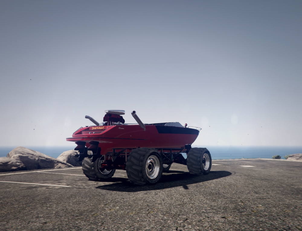 Модель автомобиля стилизованного под лодку, автомобиль способен как ехать на суше так и плыть по воде.