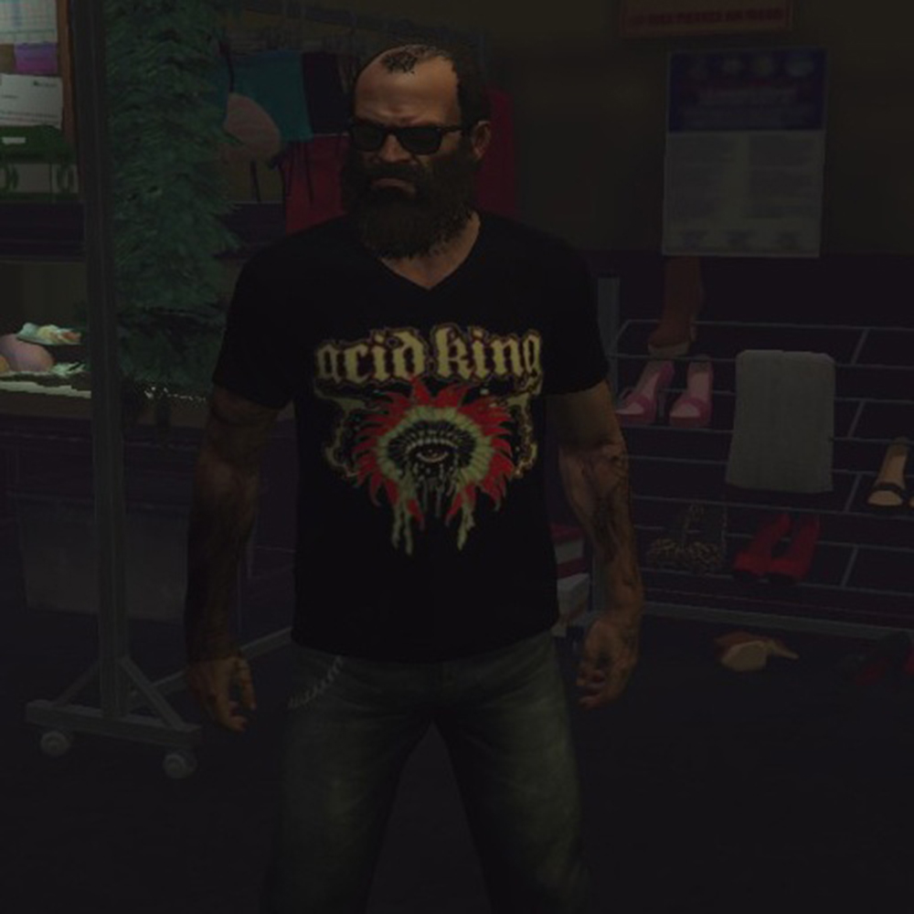 Пак стильной байкерской одежды с логотипами музыкальных групп таких стилей как "Doom" и "Stoner". Одежда предназначена для Тревора.