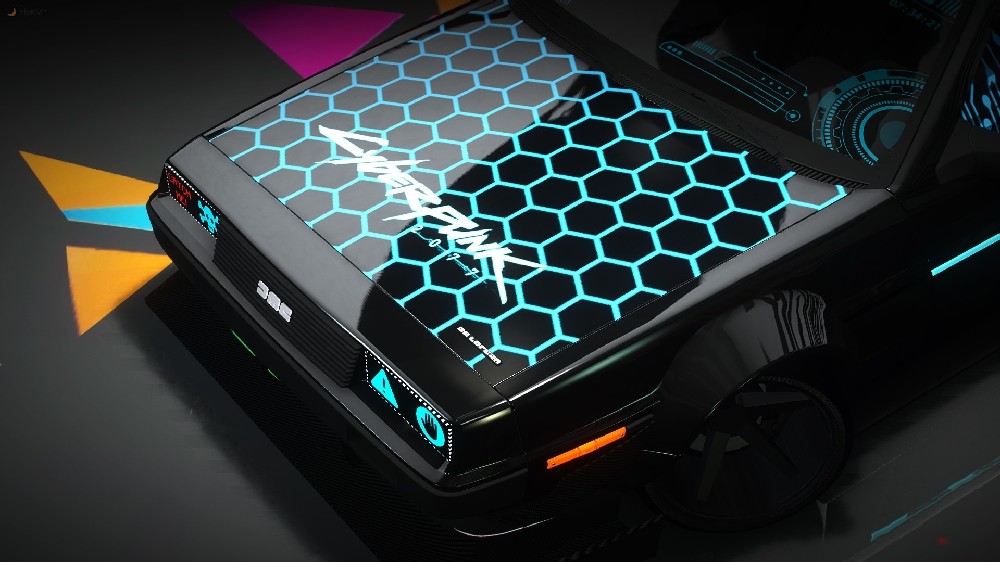 Модель известного автомобиля Delorean DMC-12 в стиле "Cyberpunk".