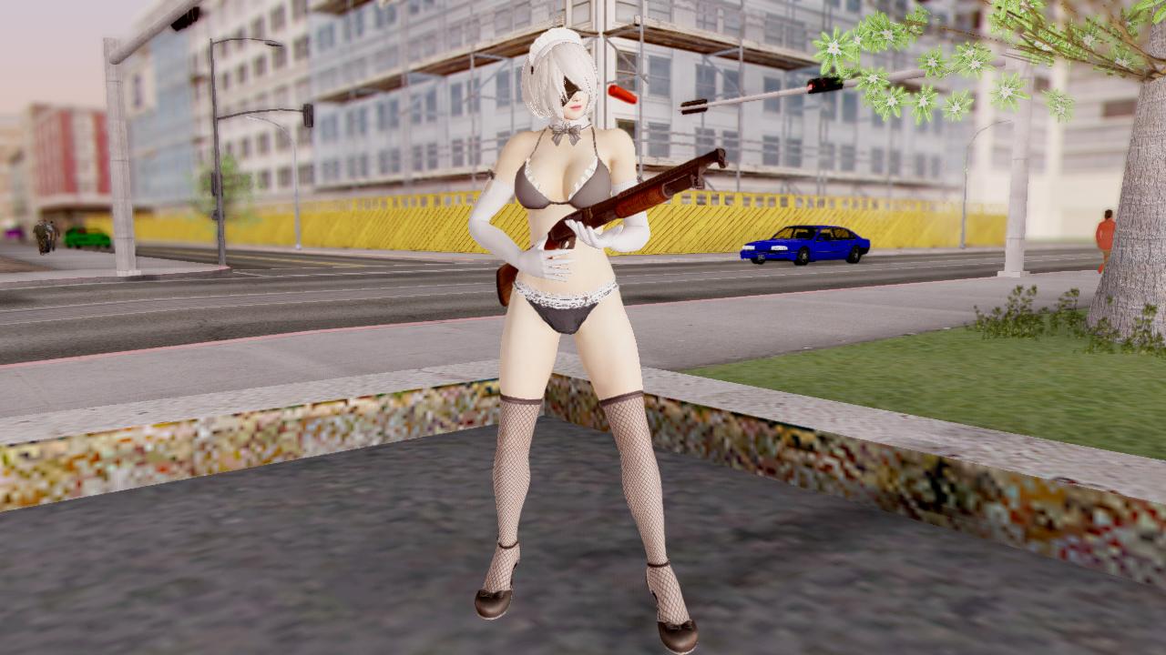YoRha 2B (NieR:Automata) в нижнем белье горничной из игры Dead or Alive 5: Last Round.