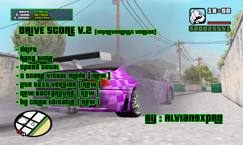 Мод добавляет миниигру в которой вам нужно зарабатывать очки дрифтуя на транспортных средствах.