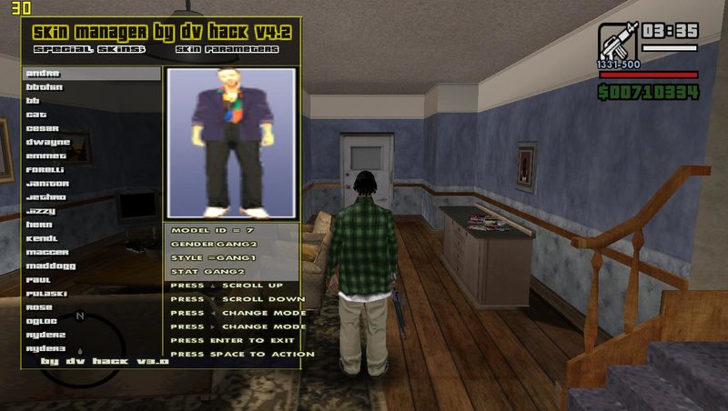 Скриптовый менеджер скинов, позволяет спавнить любого игрового персонажа.