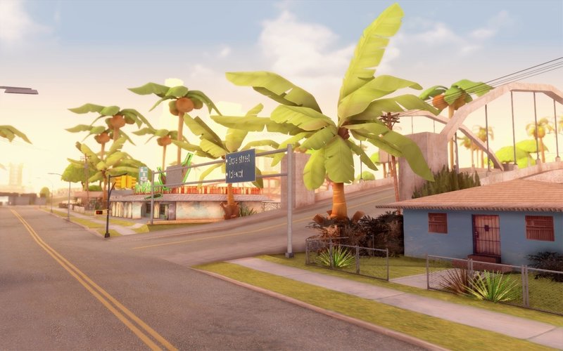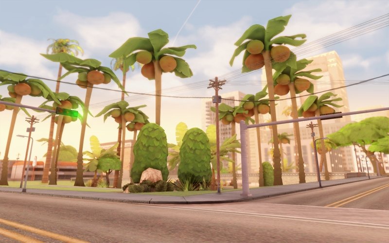 Мод заменяет оригинальные пальмы, деревья и траву на растительность из "Fortnite".