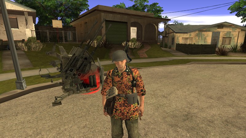 Модель рабочего зенитного оружия Flak Vierling. Для стрельбы подойдите к орудию и нажмите клавишу "T".