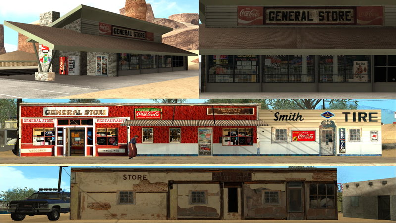 Мод заменяет стандартные текстуры магазинов в пустыне на реалистичные.