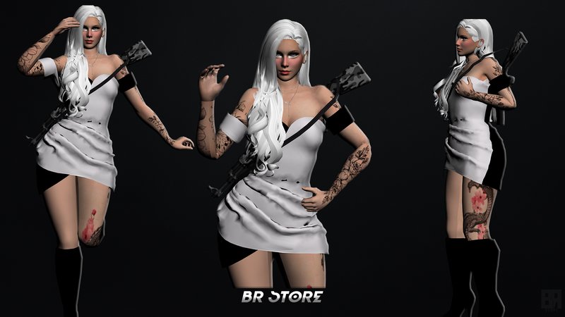 Качественный скин девушки в черно-белом платье.