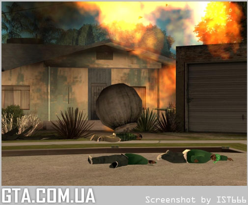 Нажмите клавишу - В, и у Сиджея появиться огромный железный шар, киньте его куда нибуть и бежите подальше, шар начнёт прыгать по разной траектории и взрываясь, убивая людей, взрывая машины и разрушать все вокруг.