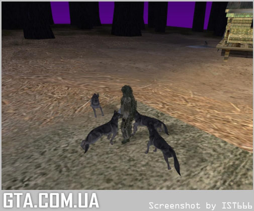 В одном из лесов Сан-Андреса завелась стая разъярённых и опасных волков. Играть вы будете не за CJ`я, а за охотника, который решил перебить эту грозную стаю. Попав в лес, будьте осторожны, волки бегут из-за деревьев и подходят тихо и незаметно. В этом лесу стоит небольшой домик в, котором лежат некоторые виды оружия, очки ночного и теплового видения, а так же бронежилет. Удачи вам в борьбе с дикой стаей этих беспощадных созданий.