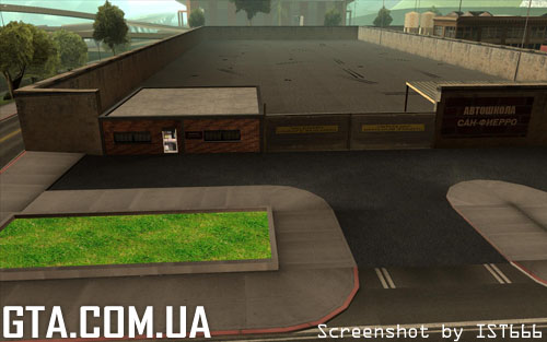Полностью новая автошкола в Сан-Фиерро. Заменена дорога, само здание, газон вместо земли. Внутри полностью изменён интерфейс. Новая карта, машины, текстуры.