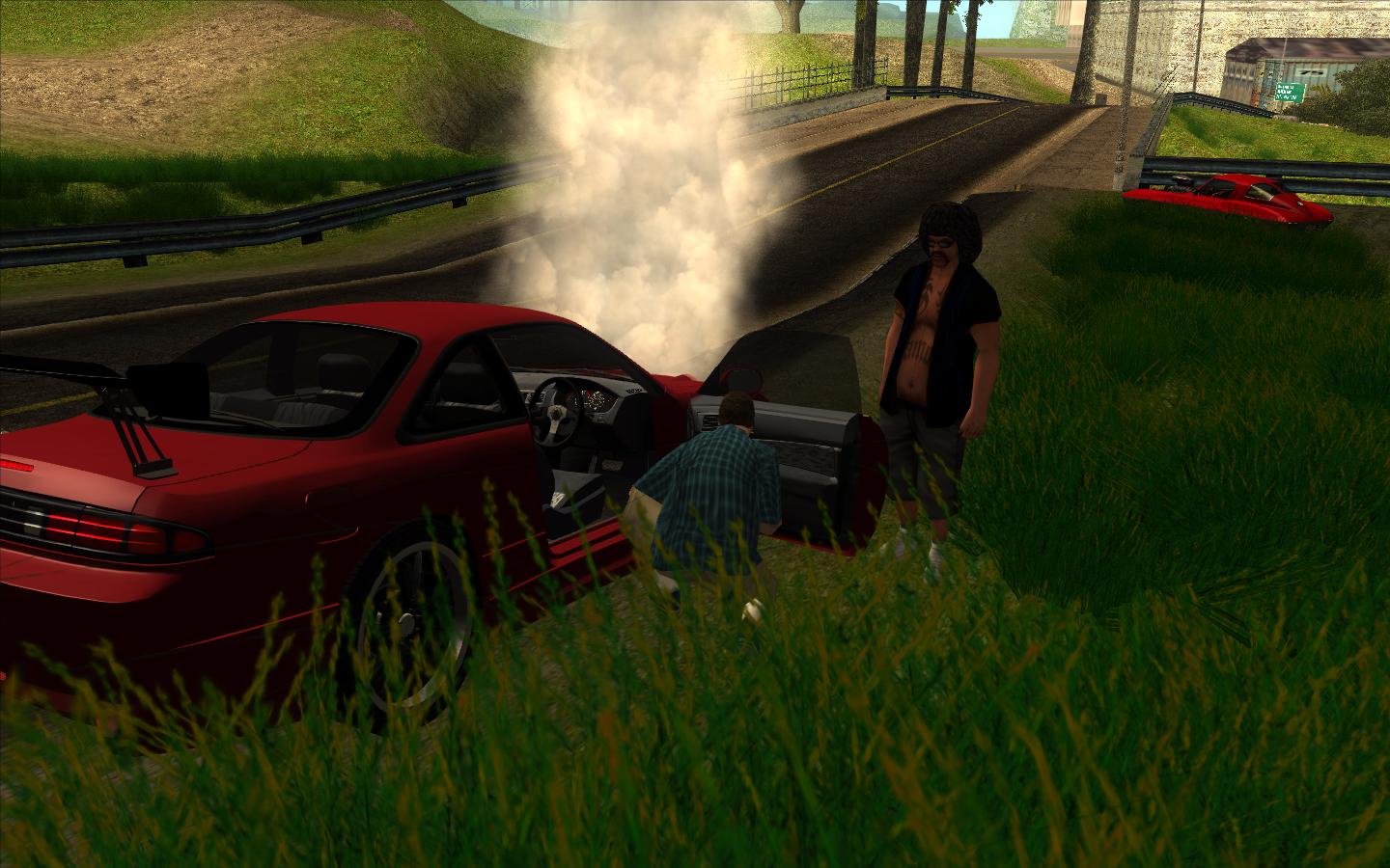 Теперь возле деревни Bluberry (место указано на скрине) вы увидите две поломаные машины, одного парня который ее чинит и второй разговаривает около нее, а на речке вы увидите парня и девушку!