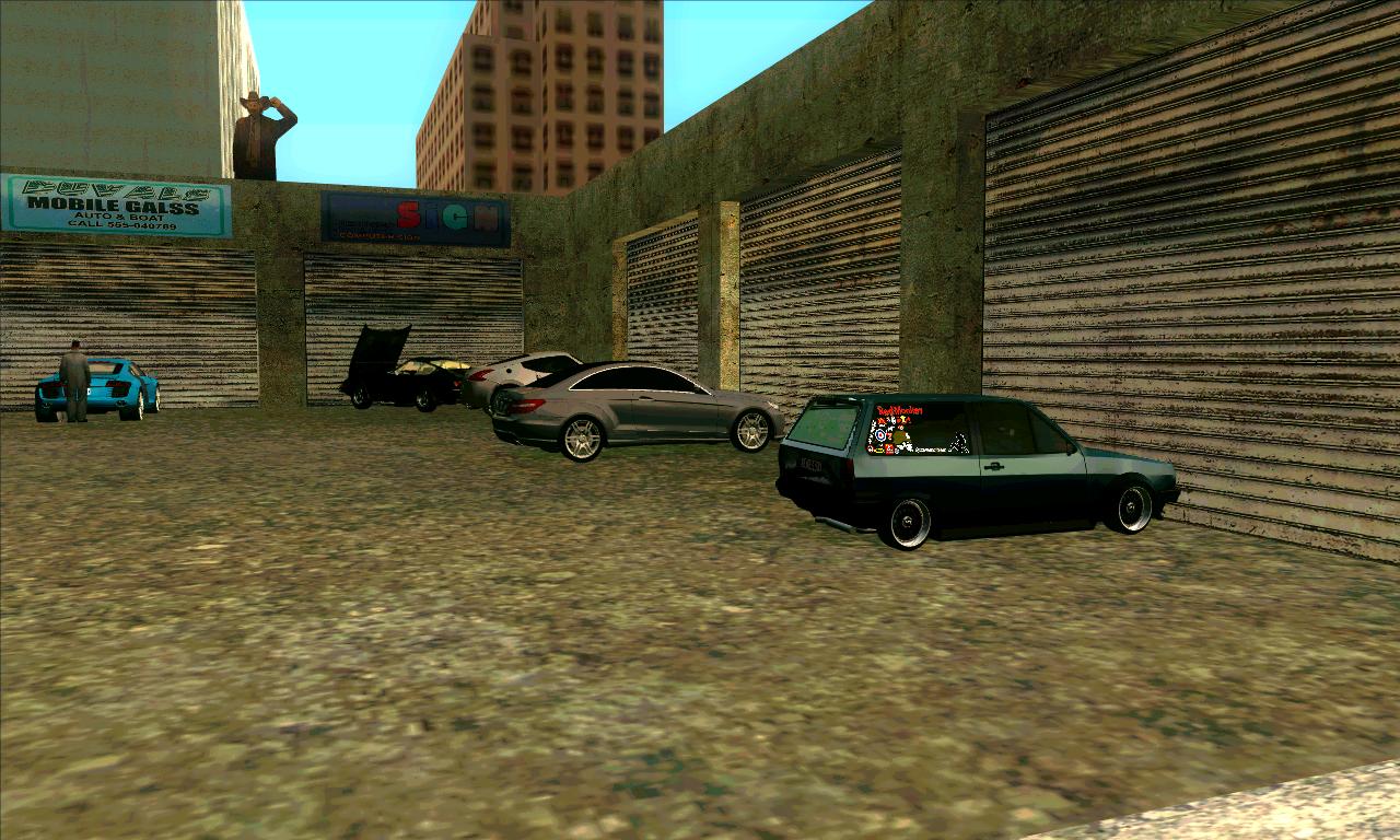 Теперь у Сиджея в Лас-Вентурасе будет свой собственный автосервис. На нем работают несколько человек и вы сможете получать с него деньги... На территории добавлено кучу автомобилей и несколько простых людей (которые приехали проверить свои машины).