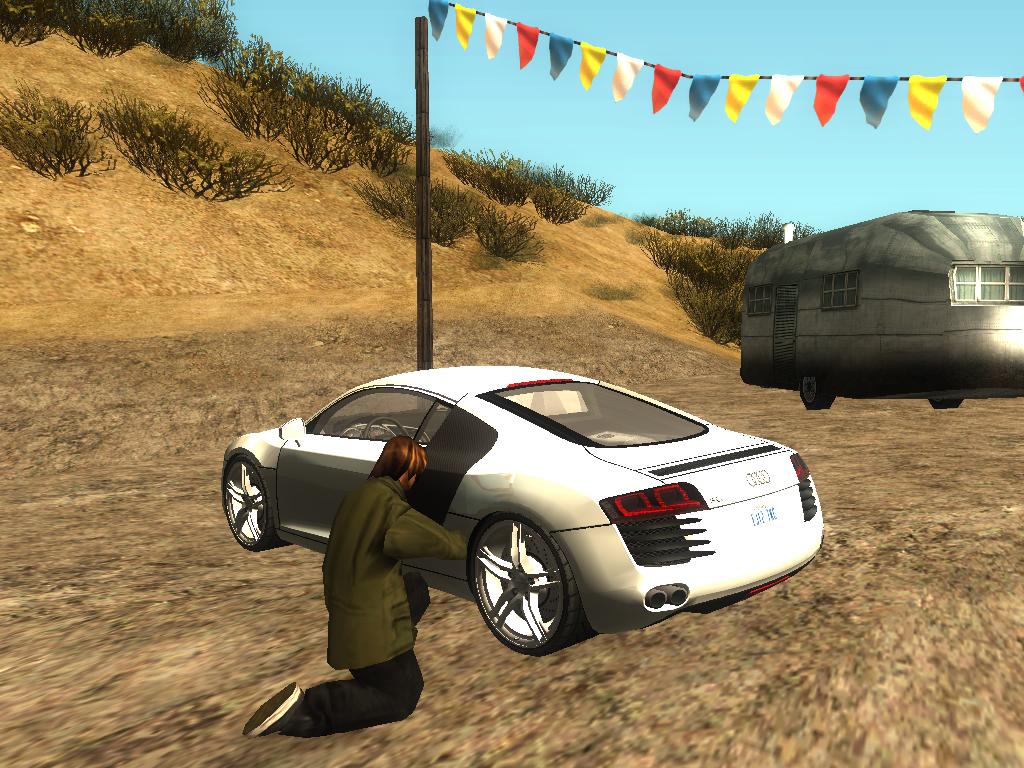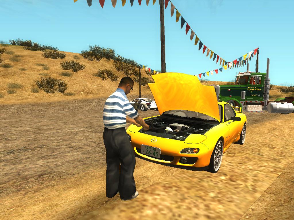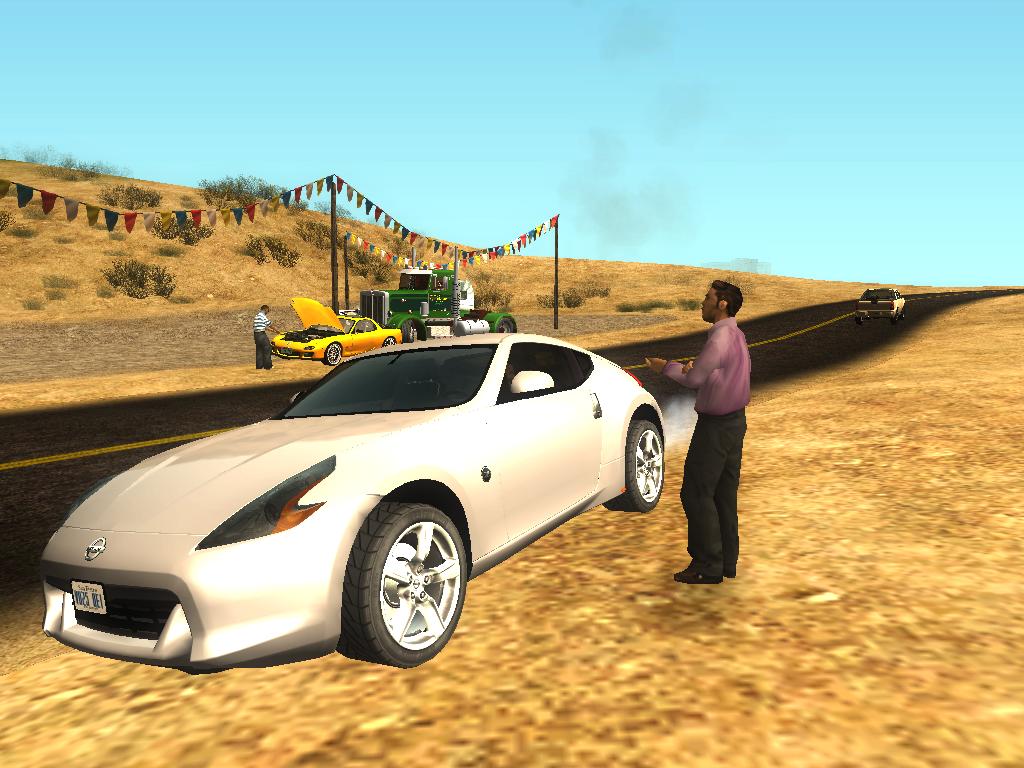 Добавляет на просторы штата одну жизненную ситуацию. Теперь на парковке (возле авиашколы) будет стоять чувачок и проверять шины своего автомобиля. Возле этой же парковки стоит автомобиль и парень поднял капот и что-то там заглядывает, а напротив его друг оставил попутный автомобиль и просит чтобы их взяли на буксир.