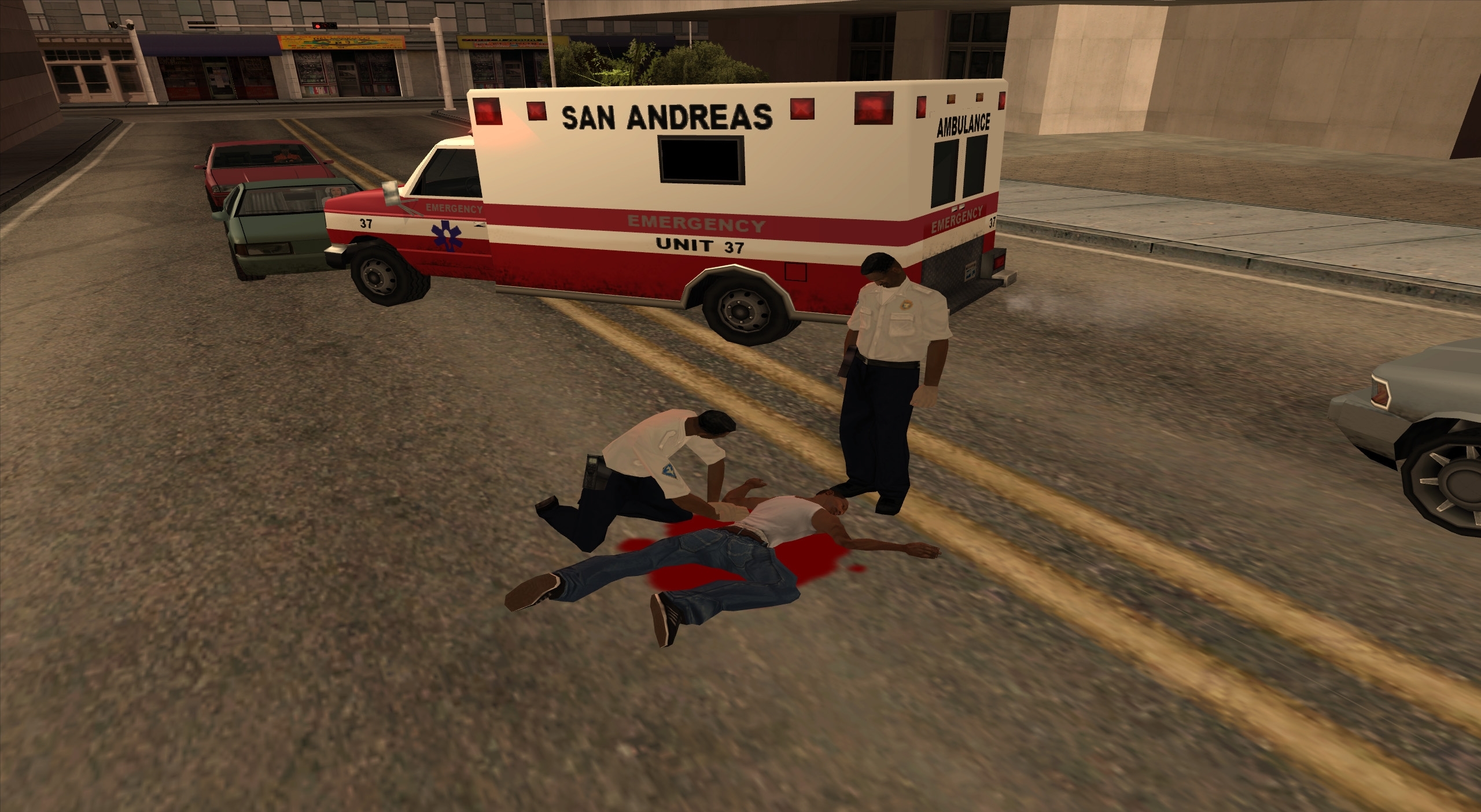 "Карл умер и сразу оказался в больнице? А вот интересно как он там оказался, он что мгновенно телепортировался?" Вообщем дорогие друзья данный скрипт полностью убирает мгновенный телепорт Карла в больницу, когда он умирает. Скрипт добавляет ролик, в котором будет полностью показано, как Карла вылечивают и привозят в больницу на скорой помощи. Если у Карла хорошие отношения с его девушкой Кати, то как Карла выпишут с больницы, она за ним приедет в городскую больницу Сан-Фиерро и отвезет к себе домой на чашечку горячего кофе и немного подлечит (работает только тогда, когда Карл умер в городе Сан Фиерро и у него хорошие отношения с Кати).