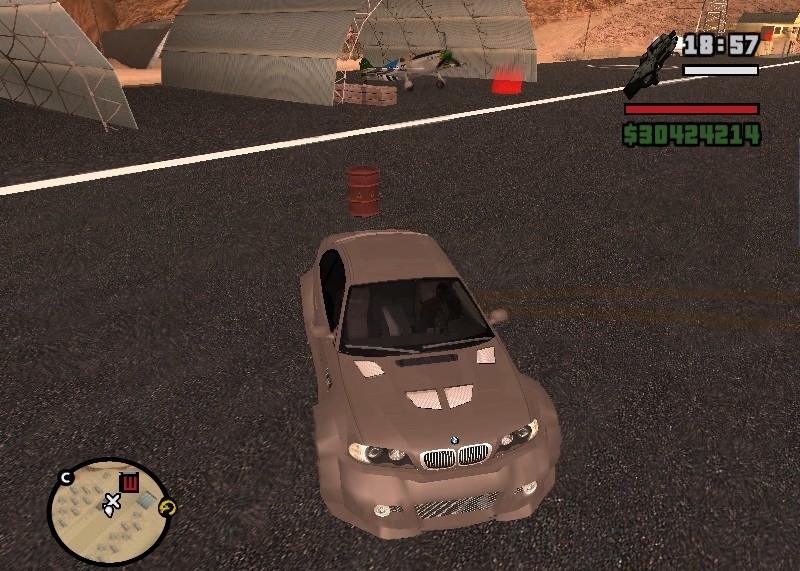 Чтобы сбросить красную бочку, сядьте в транспортное средство и нажмите на Х(английская раскладка). Сзади появится бочка. Если на неё наехать, то произойдет взрыв и он уничтожит любую машину, включая вашу. Так что будьте осторожны.