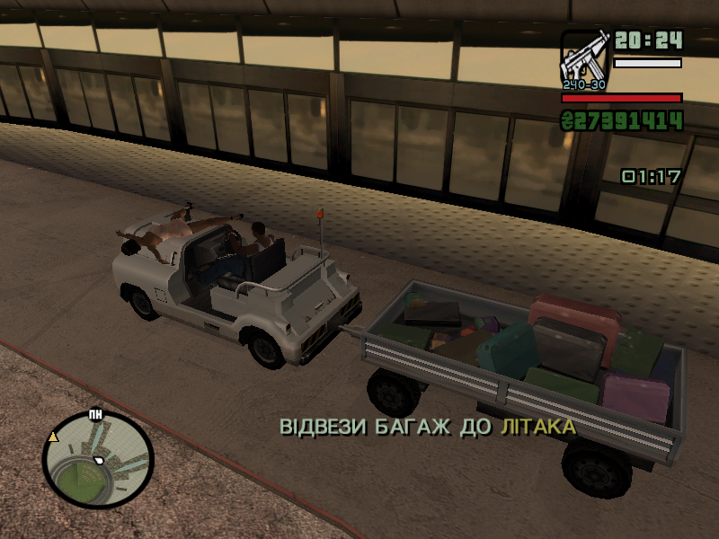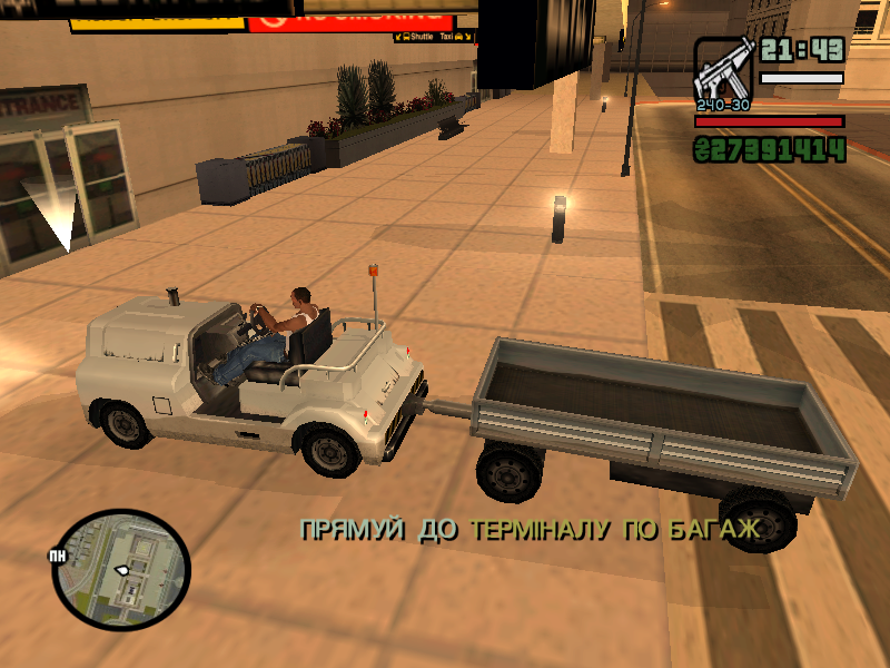 Вы сможете устроится на работу в любой аэропорт штата (кроме того, что в пустыне) и перевозить багаж пассажиров от терминала к самолету/вертолету и наоборот (это все выбирается случайным образом) на время. Поскольку времени, которого я вам выделил предостаточно, я решил не выносить все эти настройки в файл.