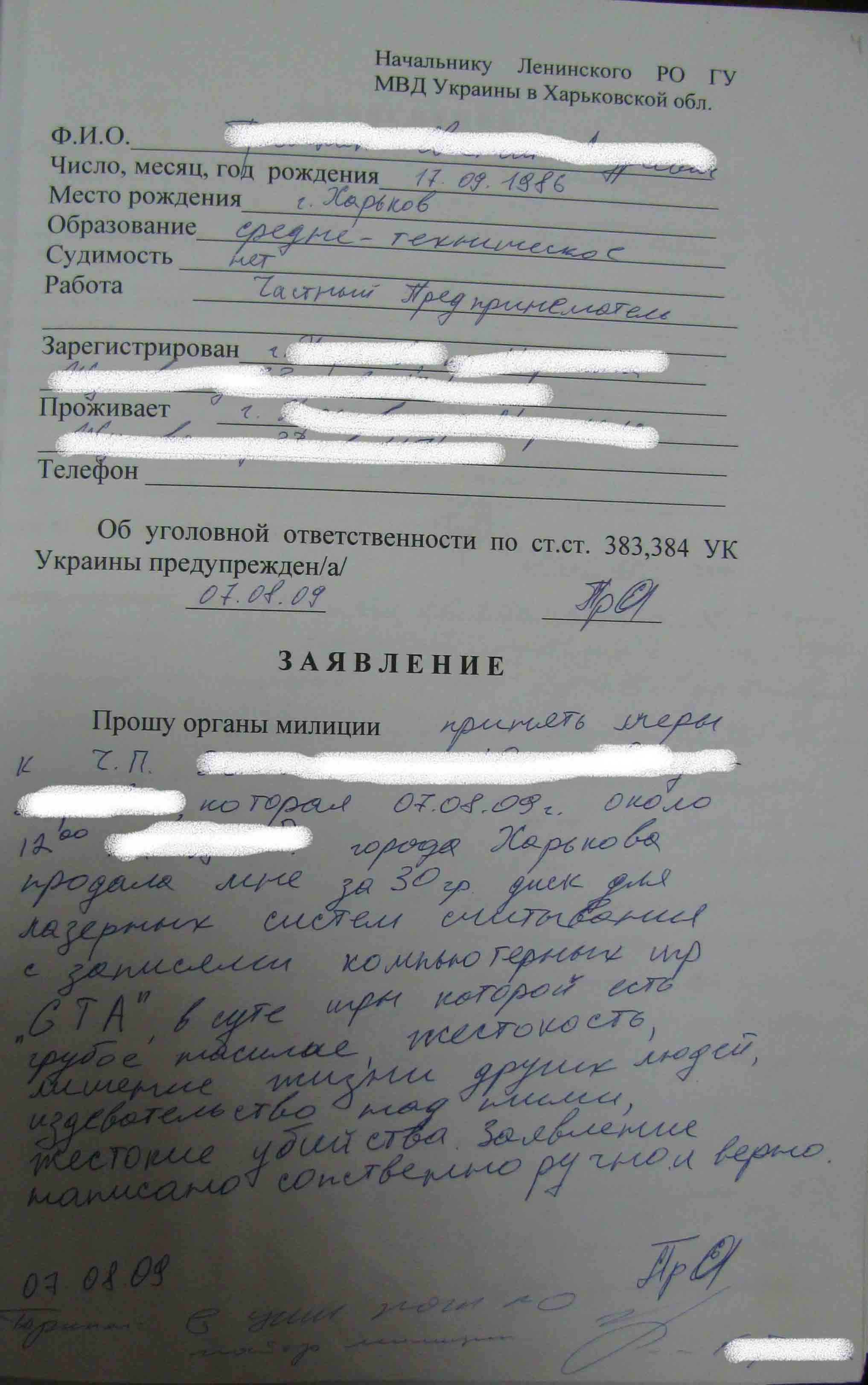 Gtta Опубликовано 17 декабря, 2009 Автор Жалоба Поделиться Опубликовано 17 декабря, 2009 (изменено) 1- Gtta, сколько тебе лет?2- Ну нет у нас в стране другой официально продаваемой гта, кроме локализации от 1С. То что ты показываешь-простая пиратка, каких на нашей балке(Харьков) 97%.3-Судя по предоставленным документам(кстати, почему ты выкладываешь их по одному? Настораживает...), инициатором является сам покупатель или родители ребёнка, которые выпали в осадок, когда увидели во что их чадо играет. Сходили в церковь, исповедались за то что их глазам пришлось увидеть, отстояли службу, а потом айда строчить гневные письма. :D "шапка органа", ода. Так и говорит, что всё это хйня. Ты сам то читал, что там написано? Там написано, что некий гандон обратился к ним с просьбой рассмотреть его жалобу о распростронении жестокой игры по стране. На что "орган", вот этим прикреплённым письмом, ему ответил, что прошение гандона получили и будет рассмотрено в установленные законом сроки...возможно будет.ЗЫ: Так же интересно, кем ты, топикстартер, выступаешь в данном вопросе. В чем твой интерес и откуда у тебя эти бумаги?Ответы на вопросы по очереди.1.Достаточно.2.Статья гласит - "пропаганда насилия и жестокости".2.1 Чтоб все писали если диск был бы производство 1С.2.2 Обвинение не в распрастранении пиратских дисков,а в содержании игры.3.Что ещё интересно по делу?Выкладываю то что считаю основным.Для этого форума.3.1 Инициатором является подставное лицо.Фото прилагается"шапка органа"для того чтоб как ты говоришь гандоны и *цензура*аболы не писали всякой ерунды.Ответ уже пришел с другого органа о котором упоминул Кабинет Министров.Я прошу тех кто может сказать чтото дельное по этому вопросу,дать совет.Хочется найти справедливость. Изменено 17 декабря, 2009 пользователем Gtta Цитата Ссылка на комментарий Поделиться на другие сайты Поделиться