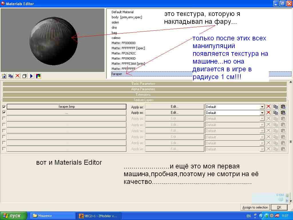 CASPER Опубликовано 29 октября, 2005 Жалоба Поделиться Опубликовано 29 октября, 2005 Когда импортирую машину(любую)в ЗМоделер,она становиться местами белая или вся.После,когда я ее вставляю в игру она вообще без них.Может их надо заново налаживать?Если да,то как,объясните пожалуйста.Я пытаюсь полностью сделать стекла тачек черными.Получается только сделать черными стекла,а вся тачка остается белой... Цитата Ссылка на комментарий Поделиться на другие сайты Поделиться