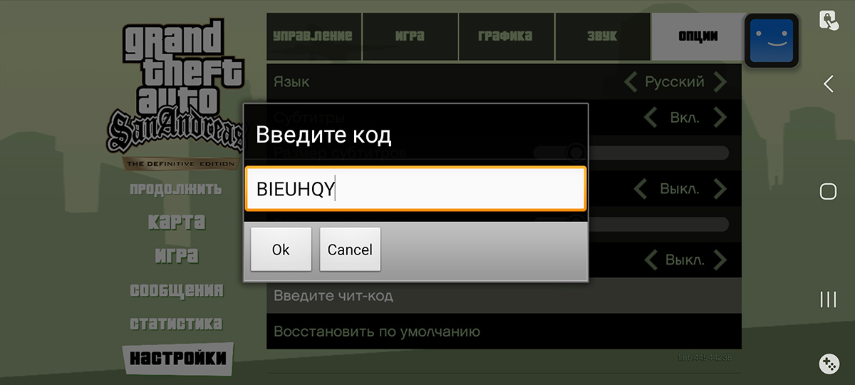 Коды на GTA San Andreas — The Definitive Edition для Android и iOS