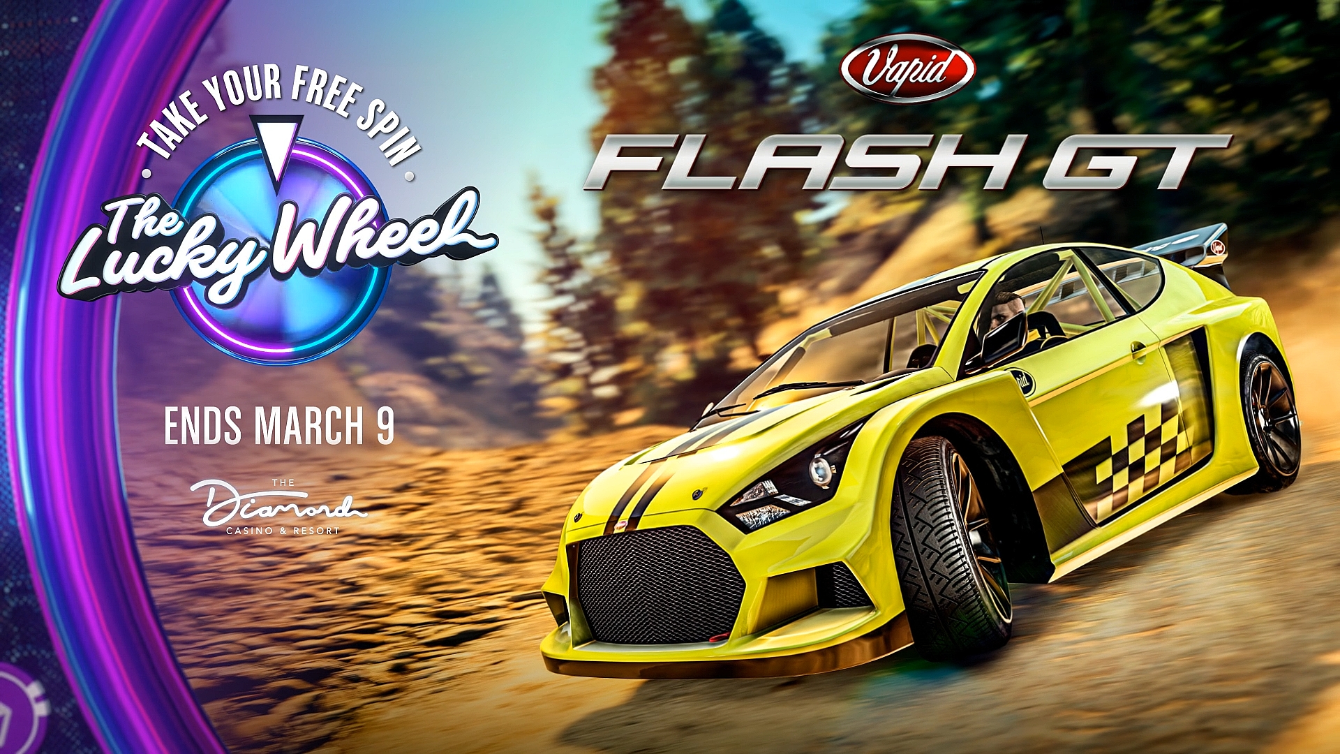 Rockstar Games обновила призовой транспорт на подиуме. Vapid Flash GT — быстрый раллийный спорткар, но так как разработчики снабдили его дополнительными параметрами баланса, он будет периодически глохнуть на кочках. В целом машина получилась интересной и поэтому заслуживает места в вашей коллекции. Крутите барабан...