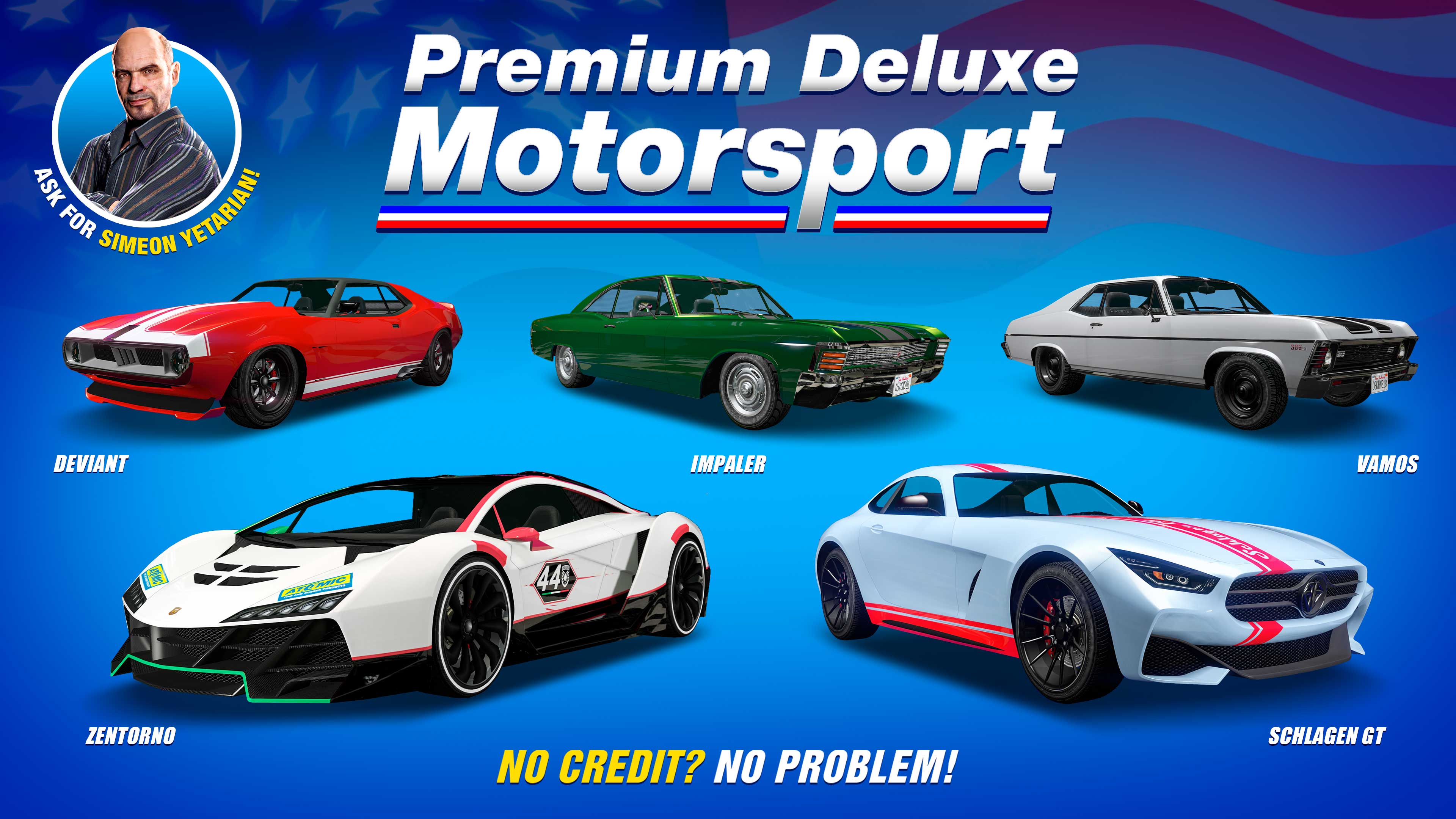 В Premium Deluxe Motorsport Симеон продаёт Schyster Deviant, Declasse Impaler, Declasse Vamos, Pegassi Zentorno и Benefactor Schlagen GT. Luxury Autos предлагает приобрести Principe Deveste Eight и Weeny Issi Rally.Гонки