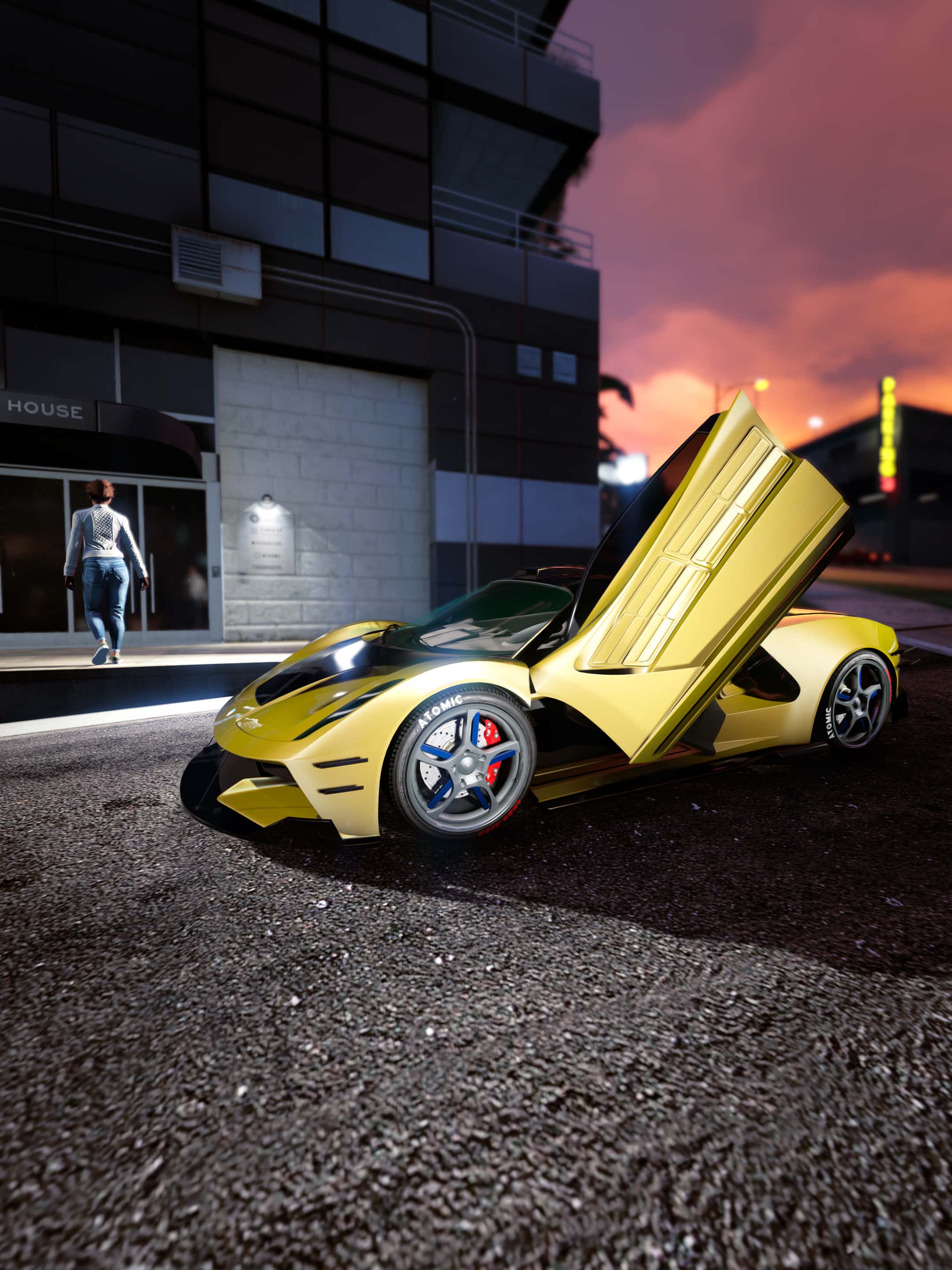 - электрический суперкар Ocelot Virtue (2 235 000 — 2 980 000 GTA$), который ещё не появился в продаже, и эксклюзивные ливреи для него;