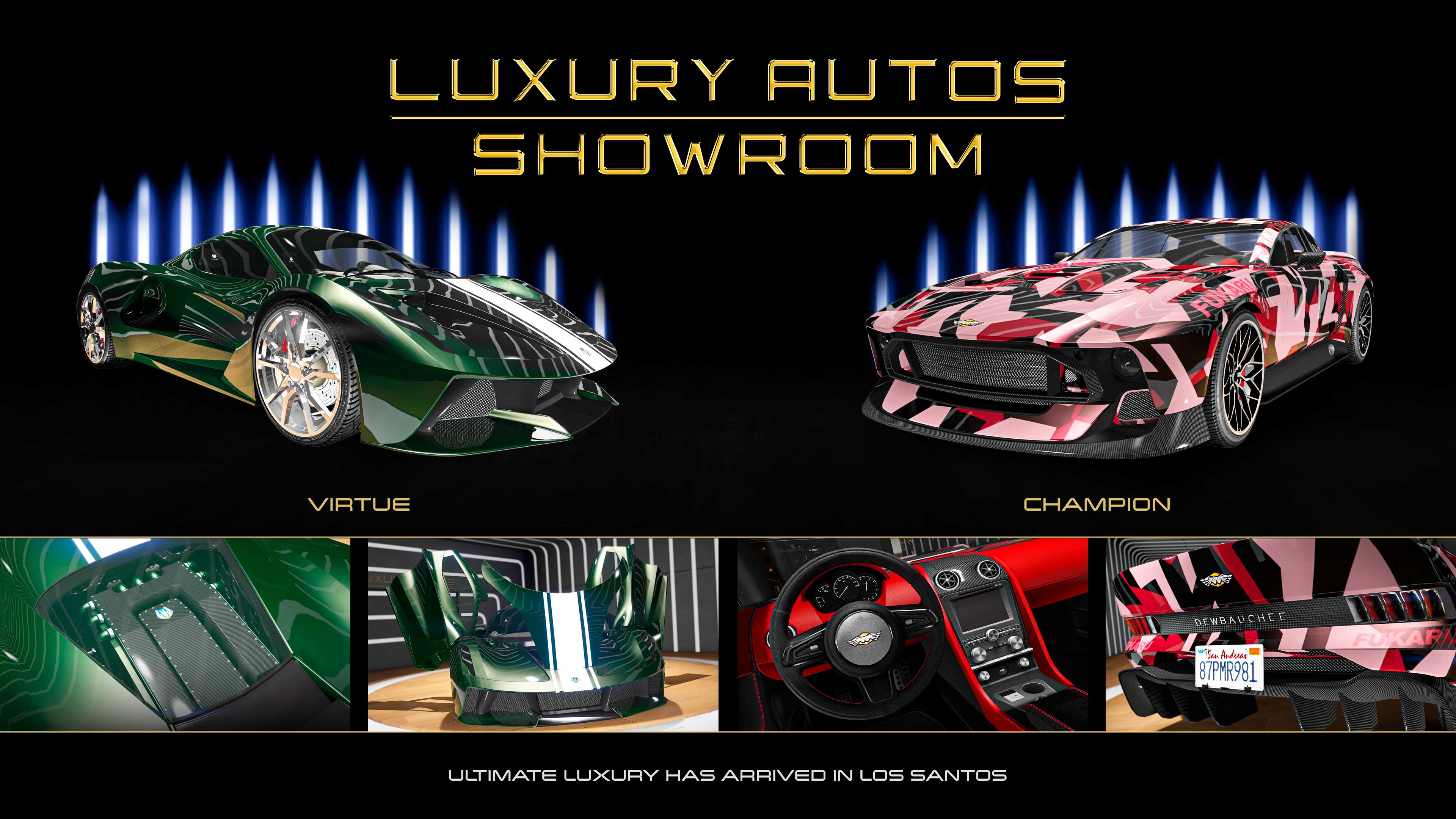 В Premium Deluxe Motorsport Симеон продаёт Dundreary Virgo Classic, Declasse Tahoma Coupe, Willard Faction, Declasse Moonbeam и Ocelot Locust. Luxury Autos предлагает приобрести Ocelot Virtue и Dewbauchee Champion.Гонки