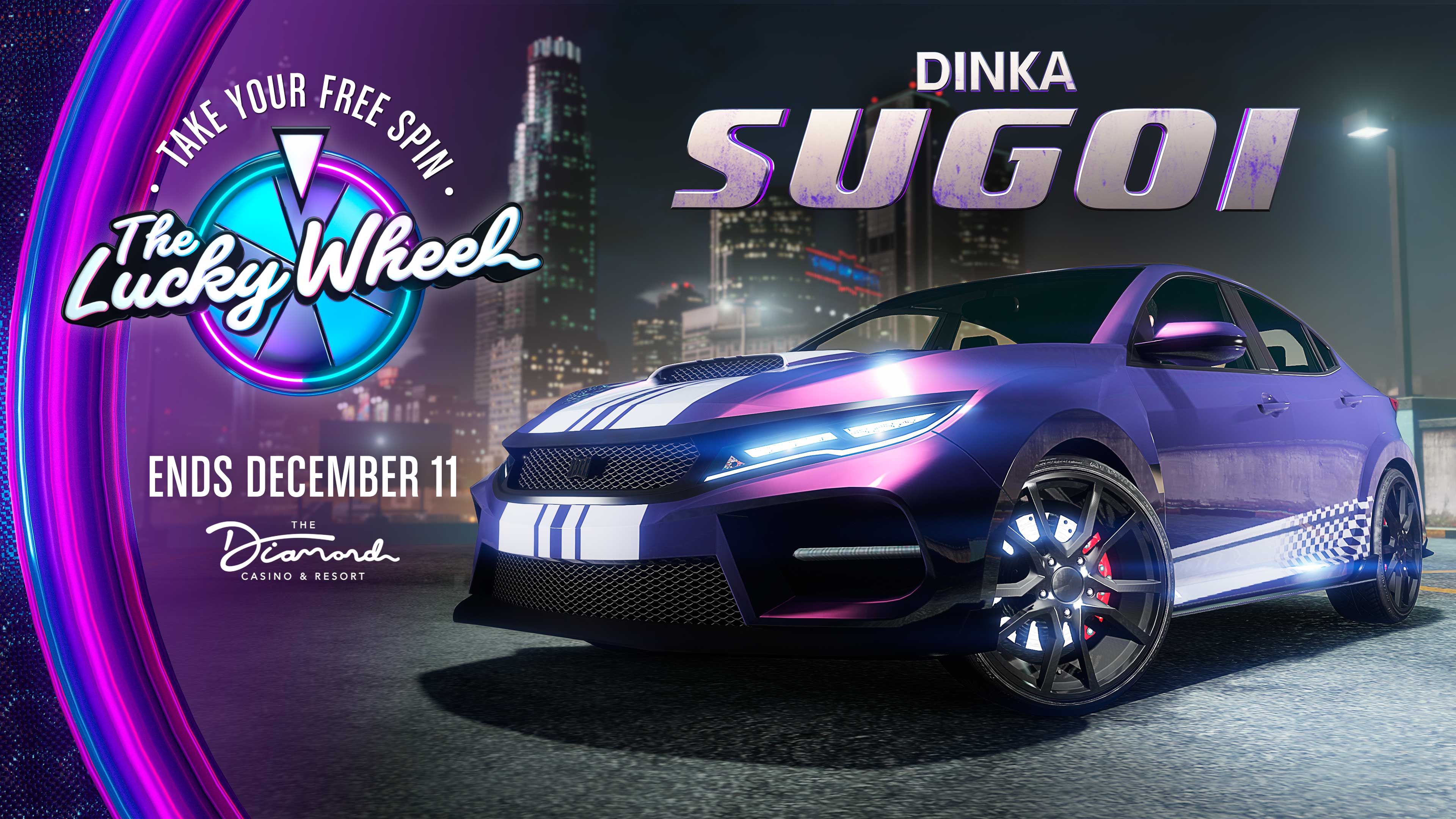 На подиуме в казино-отеле счастливчиков ждёт Dinka Sugoi стоимостью 918 000 — 1 224 000 GTA$. Для повышения шансов на главный приз при использовании колеса удачи учитывайте некоторые особенности.Премиальное испытание