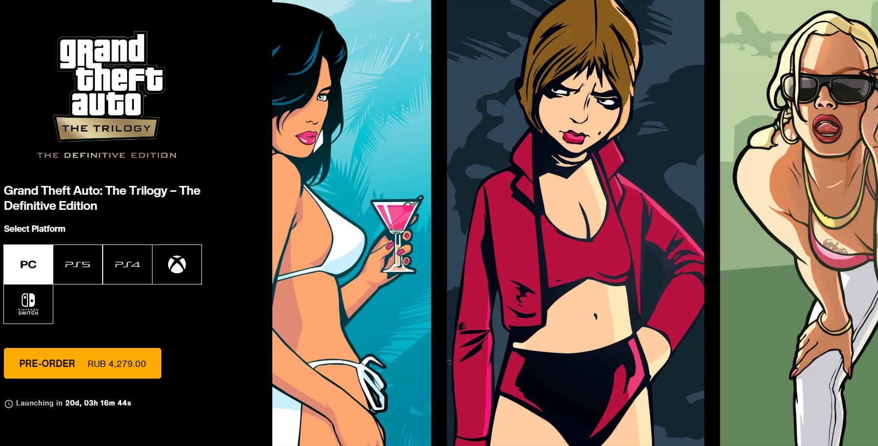 Стоимость ПК-версии составляет $60 (1,800₴ или 4,279₽). Очевидно, это высокая цена за 20-летние игры даже с учётом переиздания, поэтому мы настоятельно не рекомендуем оформлять предварительные заказы на трилогию GTA, а подождать распродаж в Steam или воспользоваться альтернативными способами получения новых Grand Theft Auto. Большинство наших читателей многократно перепроходила эти игры, поэтому не поддавайтесь на создаваемый ажиотаж вокруг переиздания трилогии GTA, и манипулятивную игру на ваших чувствах ностальгии.