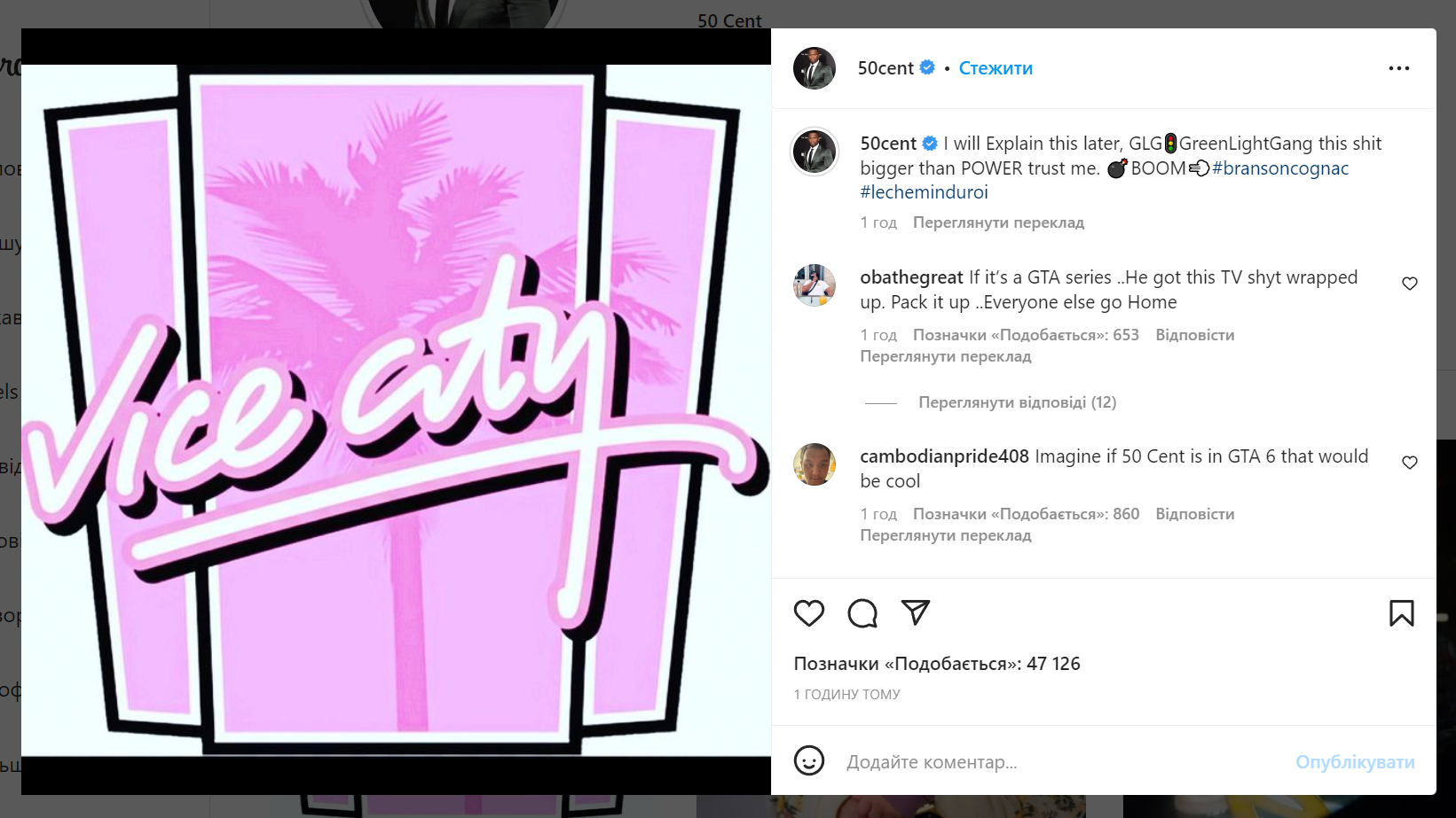 Авторы портала insider-gaming.com заметили, что в Instagram-аккаунте популярного хип-хоп-исполнителя 50 Cent появился пост, спекулирующий на теме GTA 6.