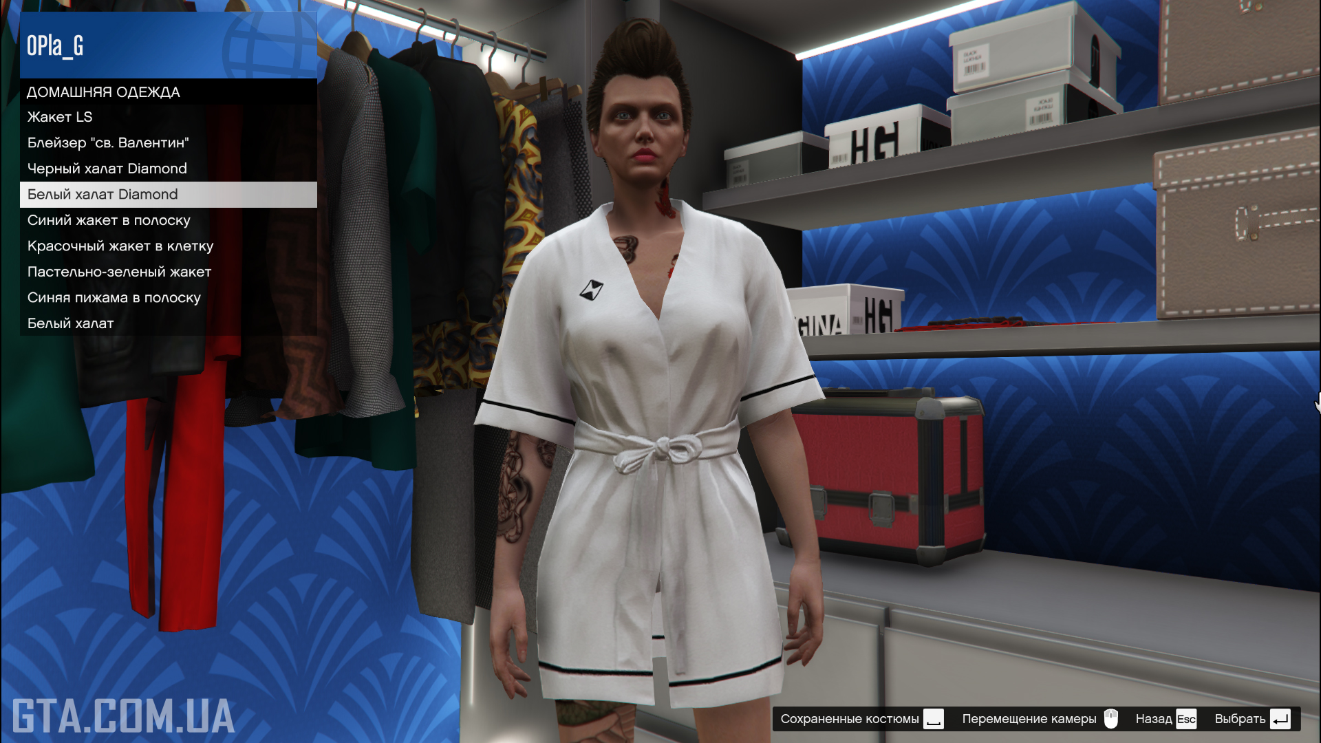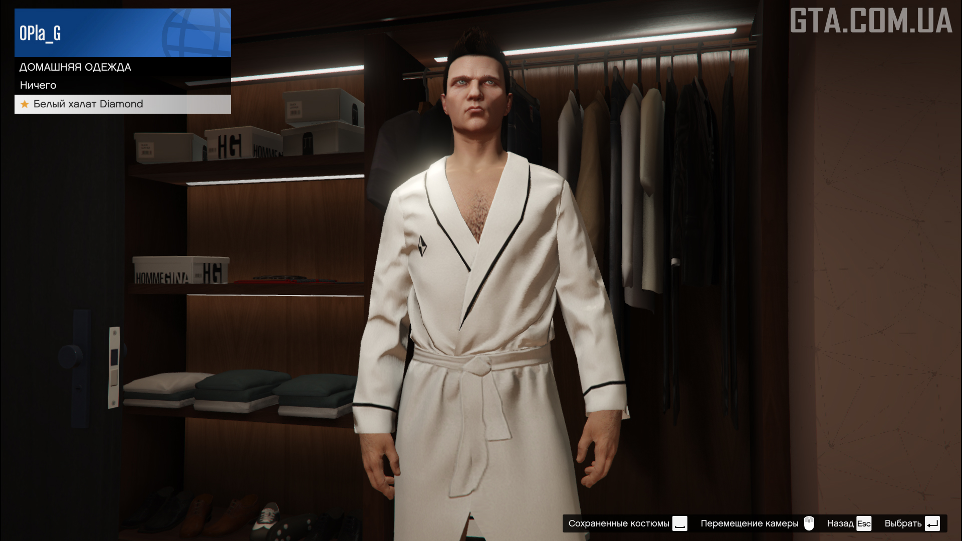 У вітальній можна посидіти на дивані, подивись телевізор, закурити, випити віскі та змінити радіостанцію. В окремій кімнаті є гардероб з усіма купленими та розблокованими речами.Спальня та ванна