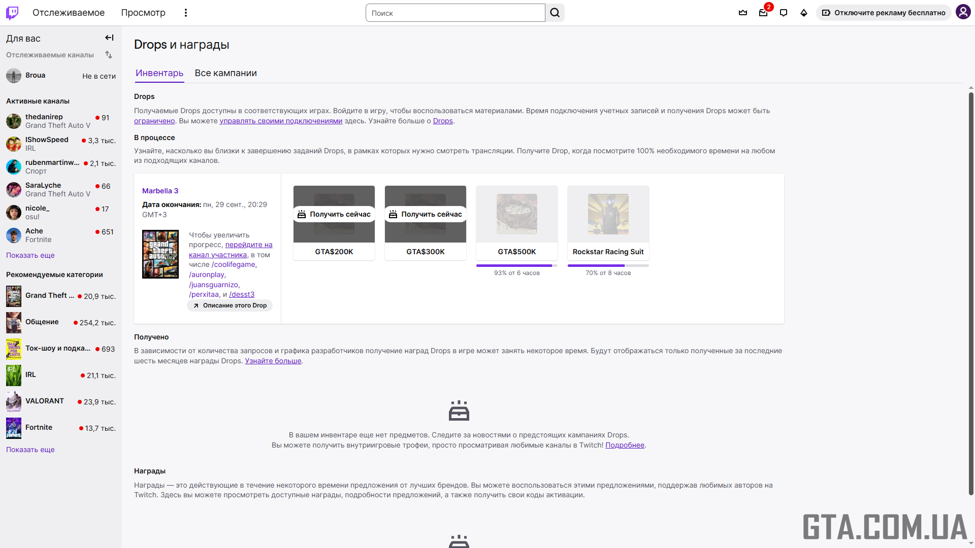 Для цього потрібно зв’язати свій Twitch з акаунтом на сайті Rockstar Games та подивитися вибрані стріми іспанської RP-спільноти Marbella 3. Отримані дропи відобразяться в інвентарі, а також на спеціальній сторінці R*.